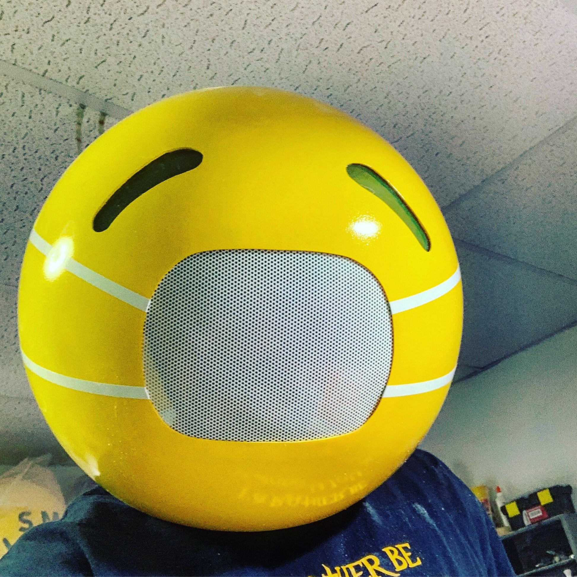 This is a 14 inch unit with one size fits all head restraint inside, it is painted high gloss yellow with custom glass and graphics for the mask on the front . White trim on the bottom to add flair and protect the paint . Custom yellow glass in the eyes and eyebrows if you want this painted with high quality paint contact us for a upgrade