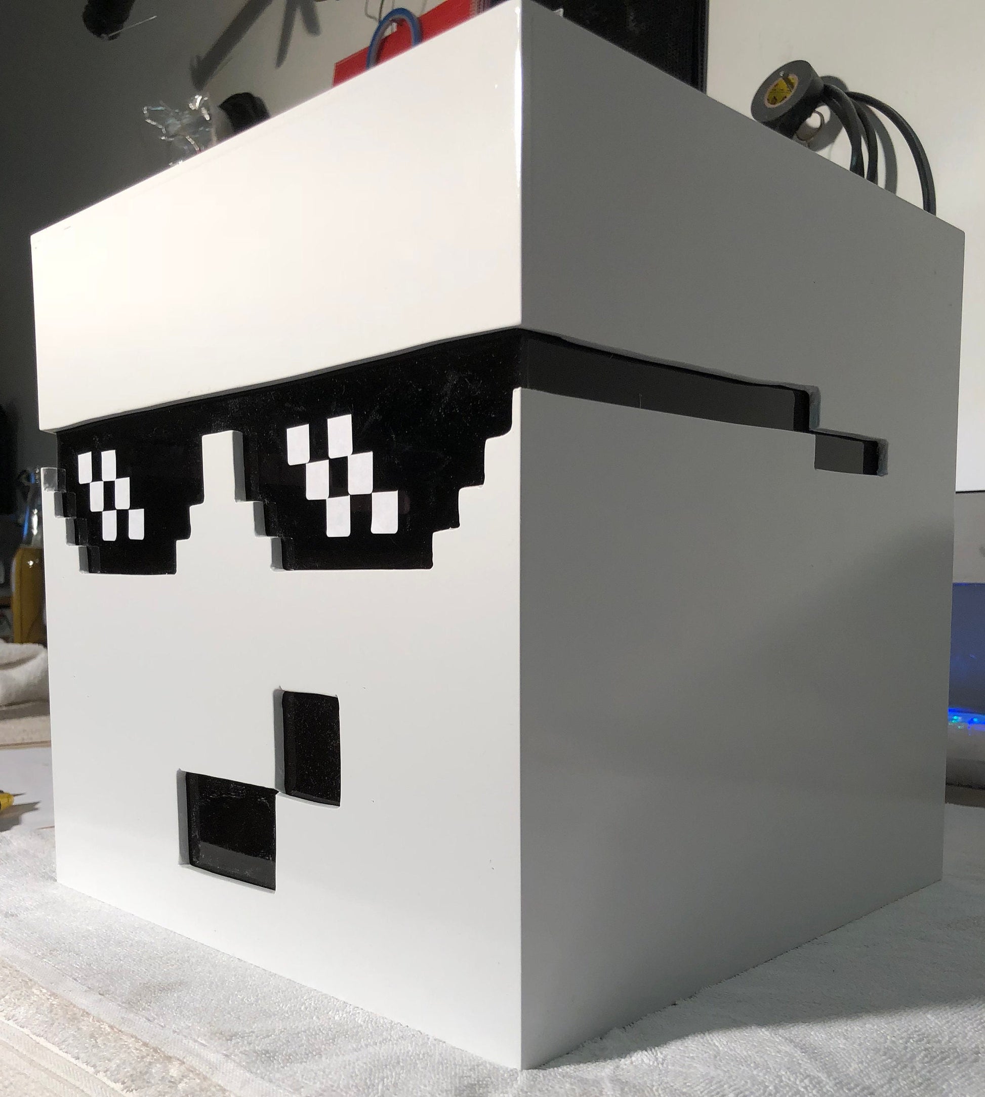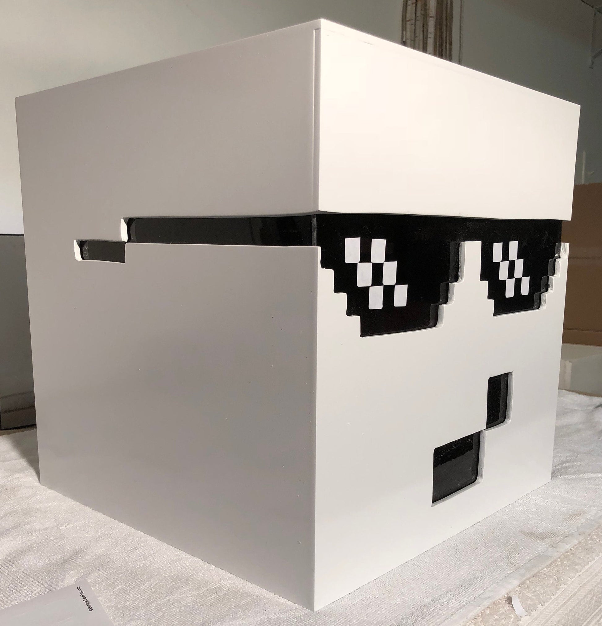 This is my Design of the "Thug Life" Meme you see everywhere in a DJ Helmet. This unit is 12x12x12 and has a ajustable head restraint inside made by 3M to ajust to anyones head size. If you are a smaller indivdual let us know so we can get a smaller size, if you need a smaller size like 11x11x11 then it will be a extra fee if I have it made for you , the standard is the 12x12x12 as pictured here, This unit has Tinted Black Acrylic glass molded into the helmet to keep your identity hidden at all times. This unit is painted white but can be painted to any color you like just let us know in the ordering section when you place the order. All orders take around 2-4weeks on average to get to your home if you want this painted with high quality paint contact us for a upgrade